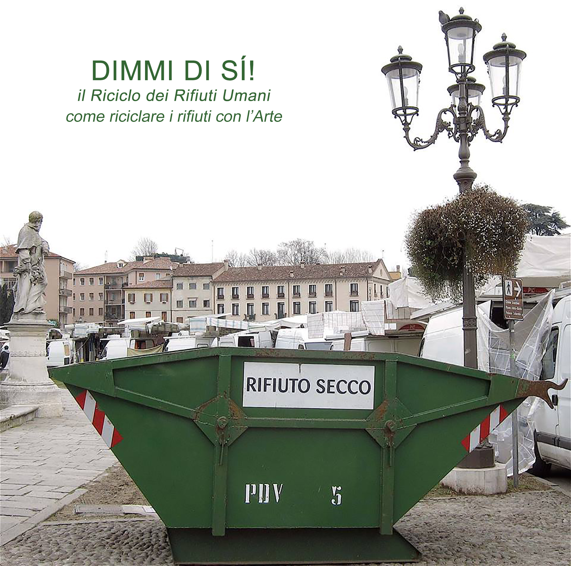 L’idea è quella di disseminare la città in luoghi chiave di cassonetti per la Raccolta Differenziata di Rifiuti Umani, si può partire anche con un unico set di contenitori inaugurato in un luogo strategico e centrale.