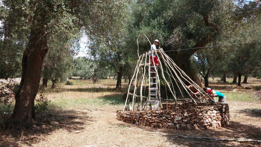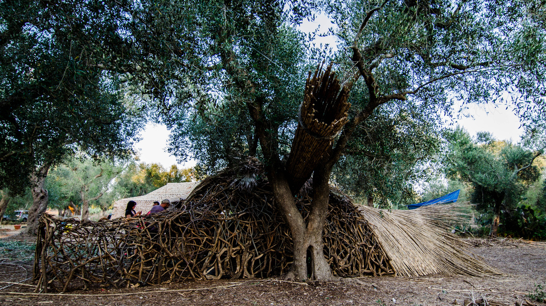 Fin da subito la land art è sembrato essere l’ambito più adeguato a verificare la trasformabilità di un oliveto in un albergo diffuso, attraverso la progettazione e la costruzione di habitat biodegradabili: nidi per soggiorni temporanei, spazi per la meditazione, rifugi per esperienze immersive a stretto contatto con la natura, realizzati con i materiali di scarto dell’agricoltura. Le opere realizzate vengono messe a disposizione per accogliere turisti, ricercatori, studenti e viaggiatori che si muovono a piedi, in bicicletta o a cavallo, in un contesto che esalta l’agricoltura sostenibile, il consumo di prodotti locali e che contempla anche attività educative e ricreative.