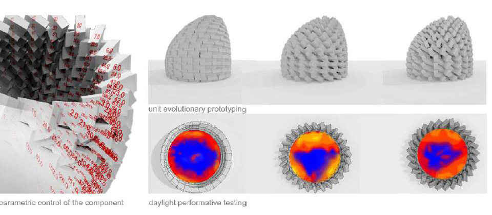 P.C. Si tratta di utilizzare le tecnologie avanzate in modo creativo con l’obbiettivo di fornire soluzioni site-specific ottimizzando risorse. In tal senso l’agenda di ricerca considera come elemento generativo del progetto il rapporto con i sistemi costruttivi ed i materiali locali. Da un punto di vista del processo progettuale ciò implica lavorare con un approccio information based in grado di definire un sistema di relazioni che regola il rapporto tra forma e performance di un manufatto. Per quanto riguarda gli aspetti della costruzione si esplora la possibilità di auto-produrre componenti strutturali low-cost, utilizzando il più possibile le risorse reperibili in situ. Questi, che possono sembrare i vincoli del progetto, diventano i driver creativi dello stesso se integrati sin dal principio nel processo di form finding digitale.