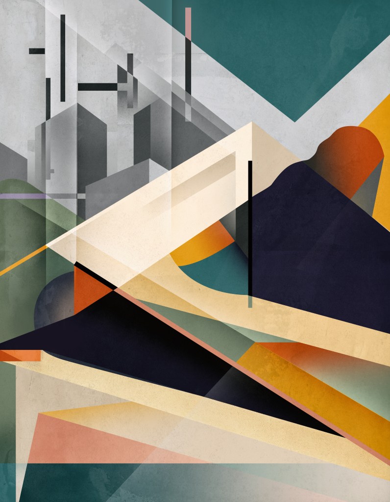 La terza immagine invece dai colori più tenui e nostalgici in contrapposizione ai contrasti dinamici delle prime due e’ un tentantivo di suggerire il movimento ad un livello più introspettivo, della memoria, dove la città di Gioiosa e’ ormai solo un ricordo desaturato sovrapposto ai suoi tracciati al suolo che ne rimangono l’ultima testimonianza.
