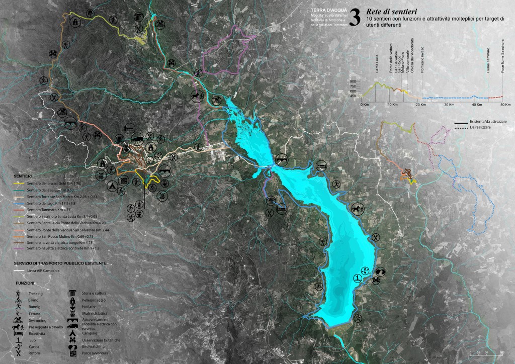 Anche in dei comuni interni si promuovono progetti per mobilitare risorse. È il caso del comune di Morcone che ha bandito un concorso [1] per la mobilità sostenibile e la valorizzazione più in generale del centro storico e dell’intero territorio comunale. Tra i progetti c’è “TERRA D’ACQUA. Mobilità sostenibile nel territorio di Morcone e nella valle del Tammaro”, vincitore del secondo premio e che propone la creazione di una rete di percorsi didattico-educativi ed escursionistici per lo sviluppo di una mobilità sostenibile e innovativa in relazione alle attività della popolazione residente e alla la promozione di un turismo responsabile.