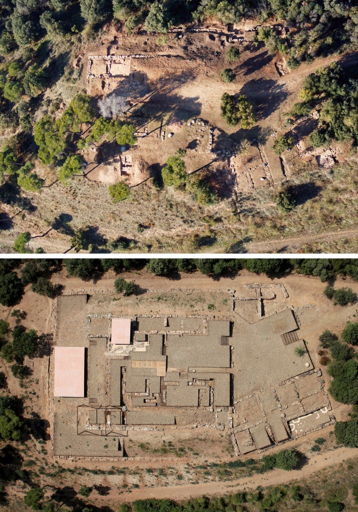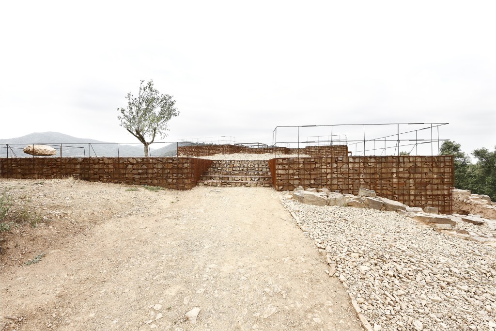 Il tutto comunica la forza della matrice originaria, delle trame riemerse. Ambiente costruito e naturale, archeologia e rinnovamento si fondono nell’intervento di recupero. L’architetto struttura lo spazio, plasma la materia antica con un sistema massivo e, al contempo, fragile, nell’uso di telai metallici in cui sono incastonate delle pietre recuperate dal sito. In questa azione di riuso del passato e dell’ambiente, Gironès riordina il sistema ambientale. Si accede nell’area archeologica, dove si trovano i resti di una domus romana del II secolo a. C., da un piccolo bosco di querce, attraverso un percorso sinuoso. Il sito, in seguito alla realizzazione della via Augusta, aveva perso la sua funzione strategica. L’intervento lavora sul limite, sul bordo mediante la costruzione di nuove mura. I materiali che formano questi nuovi confini sono recuperati dalla terra e dal pietrame presenti in loco, appartenenti ad una antica cava romana. Il sito conserva la sua autenticità in questa ritrovata forza plastica, in cui il passato, la storia e l’archeologia si legano inesorabilmente a temi desunti dall’arte, dalla scultura e dalla relazione tra costruzione e paesaggio.