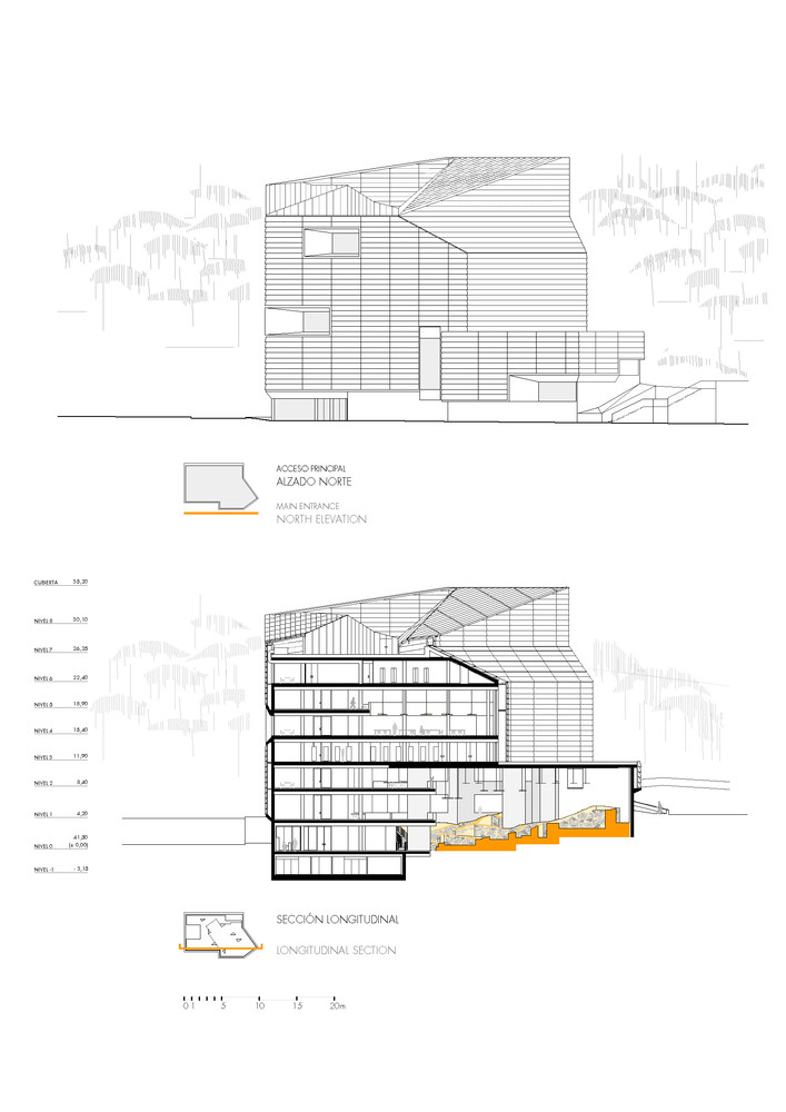 Quando Ángela García de Paredes e Ignacio Pedrosa operano nel sito archeologico fanno alcune scelte fondamentali: considerare l’area storica come basamento e costruire un grande spazio di rispetto per le antiche vestigia. Il volume compatto si deforma docilmente per accogliere al proprio interno le giaciture ruotate di epoca musulmana.