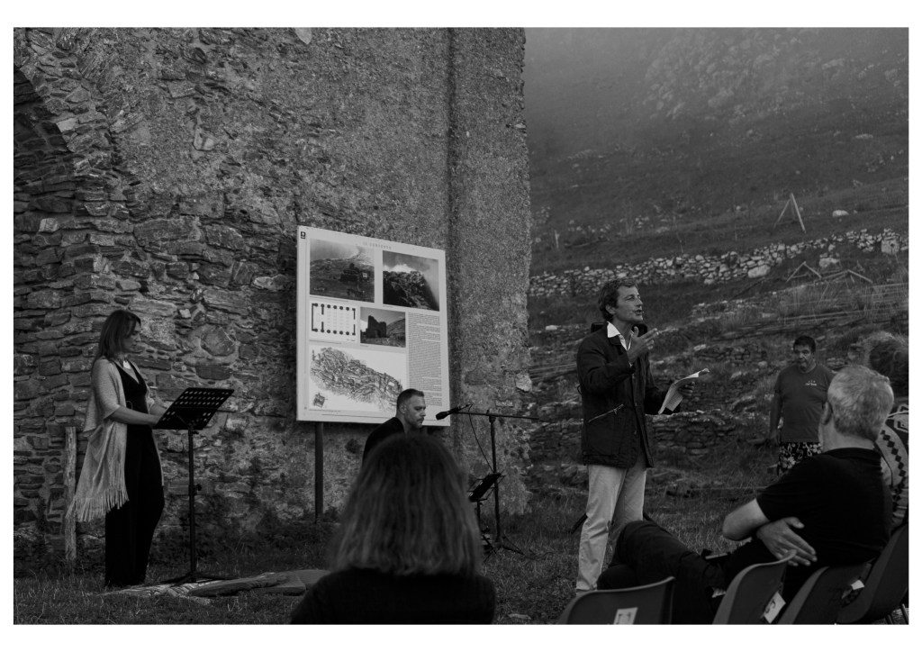 Elio Crifò è autore del testo da lui recitato, Anna Ricciardi ha liberamente rielaborato uno studio di Guglielmo Bilancioni (1) per il testo recitato da Cinzia Maccagno. Tutti gli artisti hanno lavorato al progetto congiuntamente.
