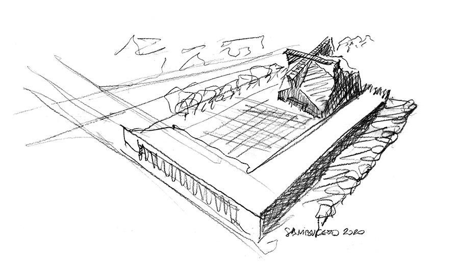 Questa tensione tra materiale e simbolico, tra memoria e progetto, trova una risonanza operativa nella progettazione architettonica più consapevole. L’opera di un maestro dell’architettura contemporanea italiana, Luigi Franciosini[13], rappresenta un capitolo eloquente. Il progetto non si sovrappone al luogo, ma lo interroga. L’architettura si trasforma in gesto ermeneutico, in una interpretazione attenta alla materia, alle stratificazioni geologiche, storiche e culturali del contesto. Una interpretazione capace di far emergere ciò che il luogo contiene in potenza, in potenza ancestrale. Ovvero il paesaggio come interlocutore, non come semplice superficie da plasmare.