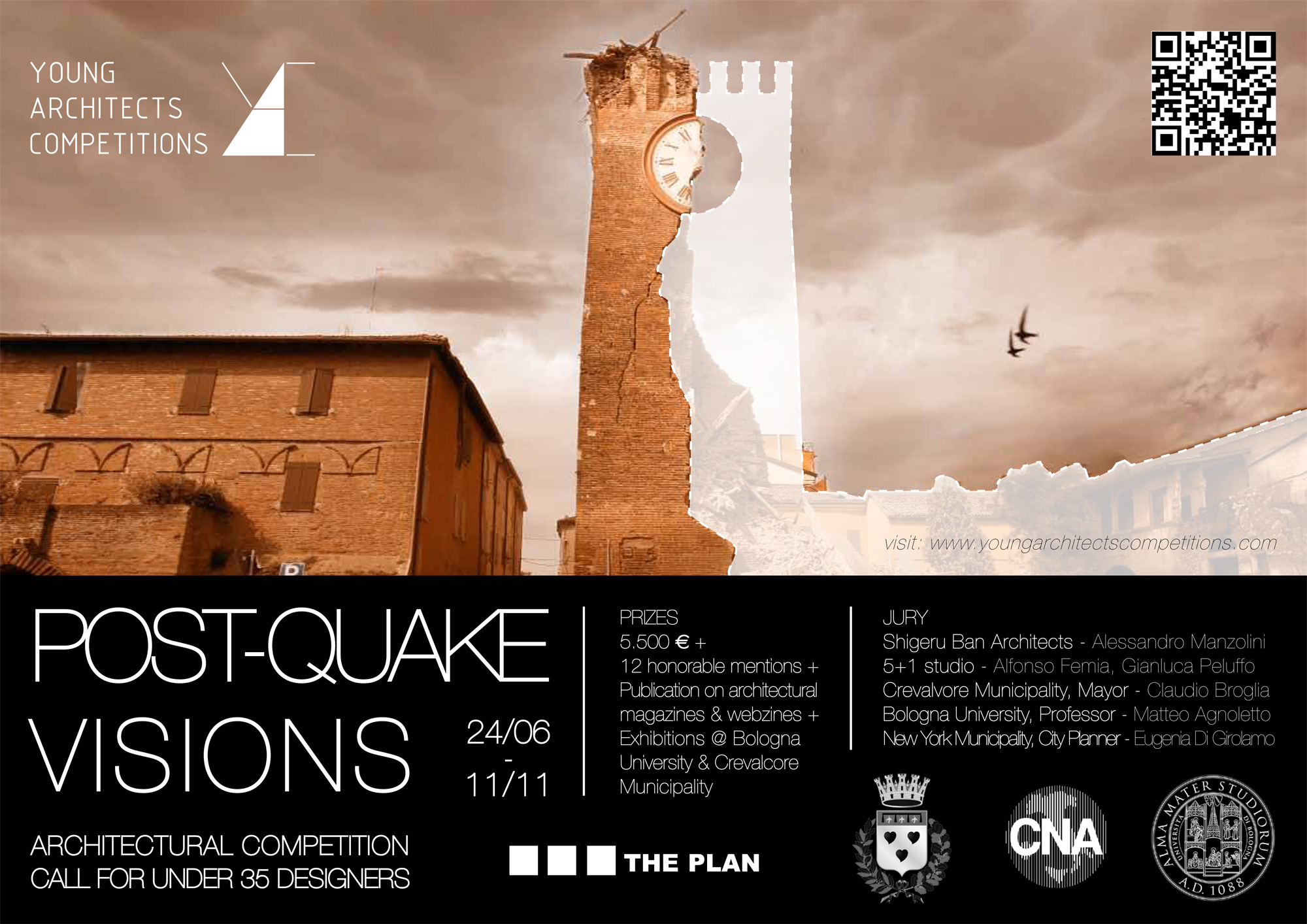 YAC crede di sì e con “POST-QUAKE VISIONS” invita gli appassionati d’architettura a ripensare i vuoti generati dal sisma quali occasioni atte a rivitalizzare gli antichi centri storici in chiave culturale ed economica, al fine di generare possibilità d’utilizzo fino a ieri impensabili od inesplorate.